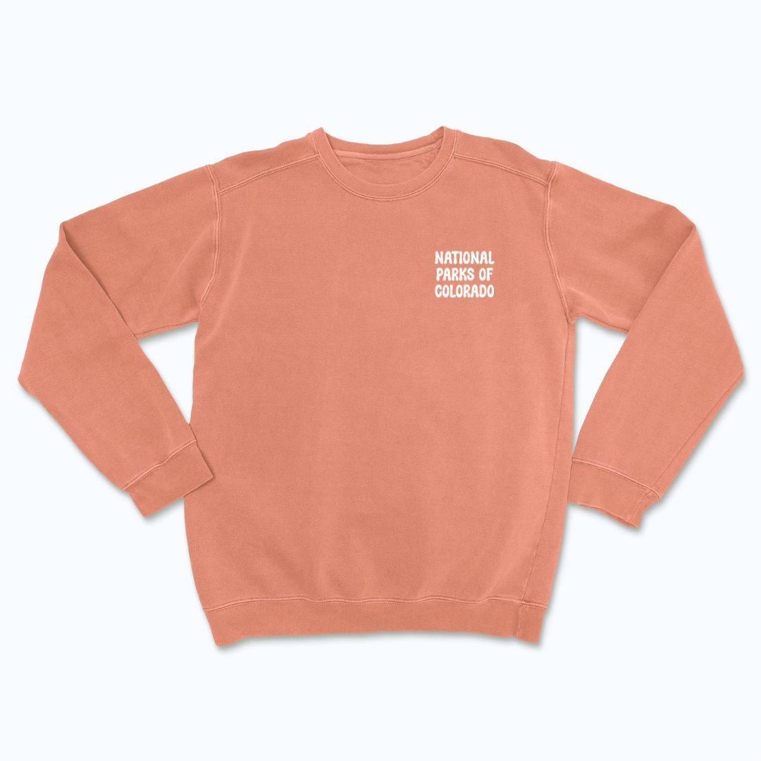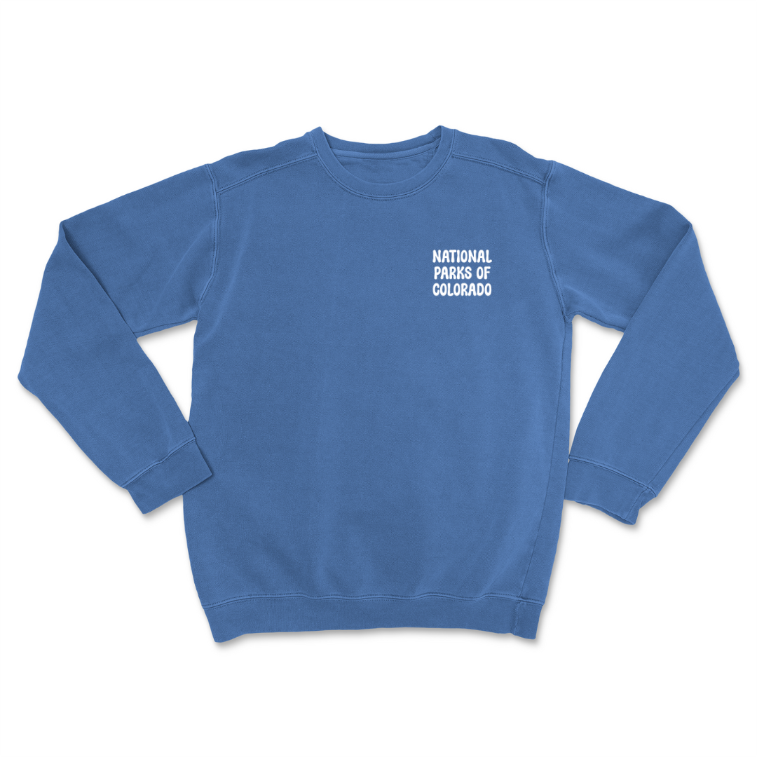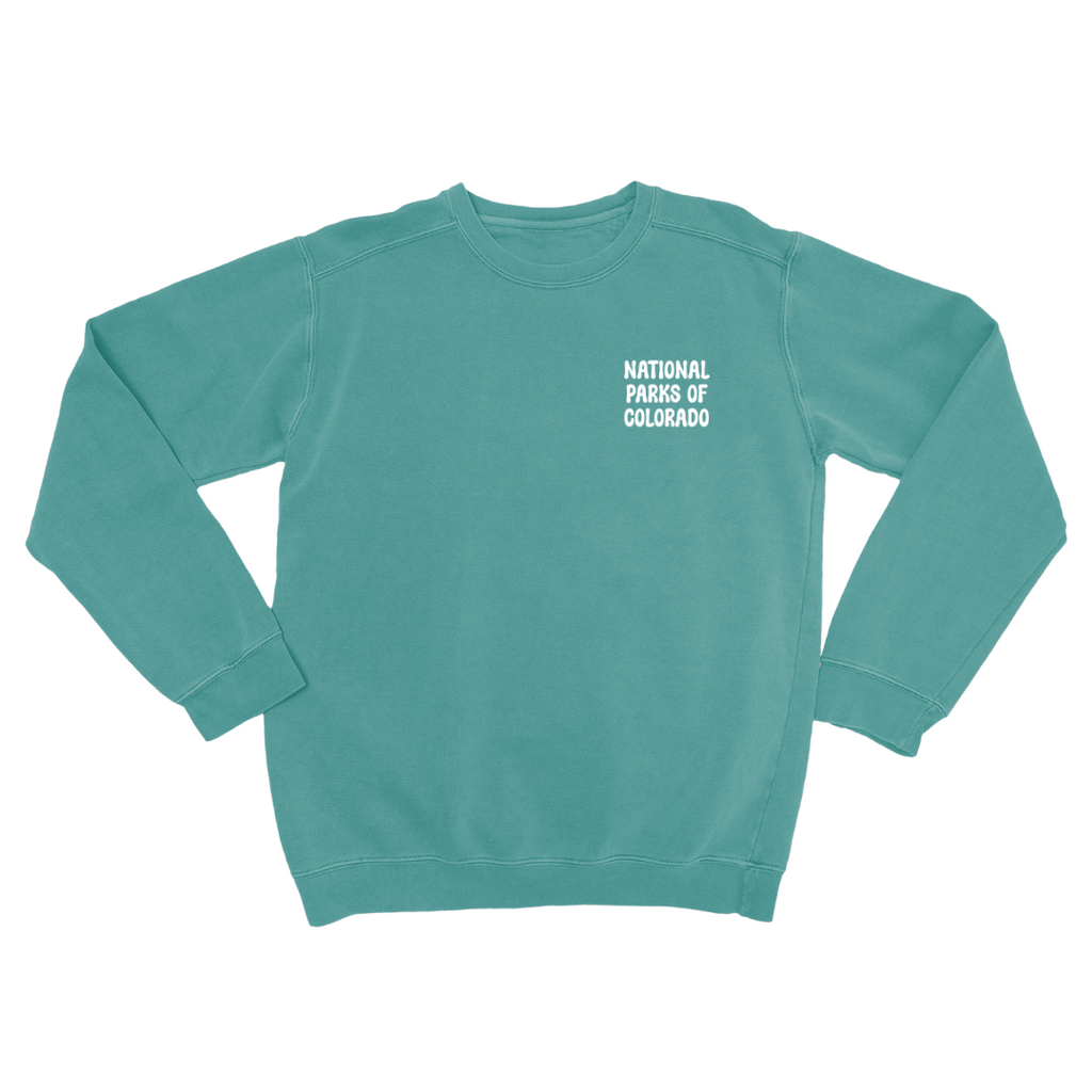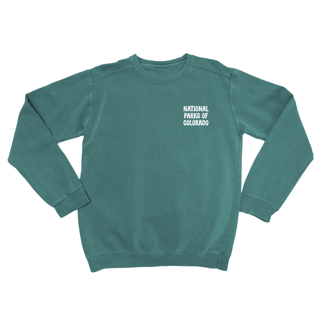 Explore the beauty of the Rocky Mountain State with our vintaged Colorado National Parks Map Sweatshirt.