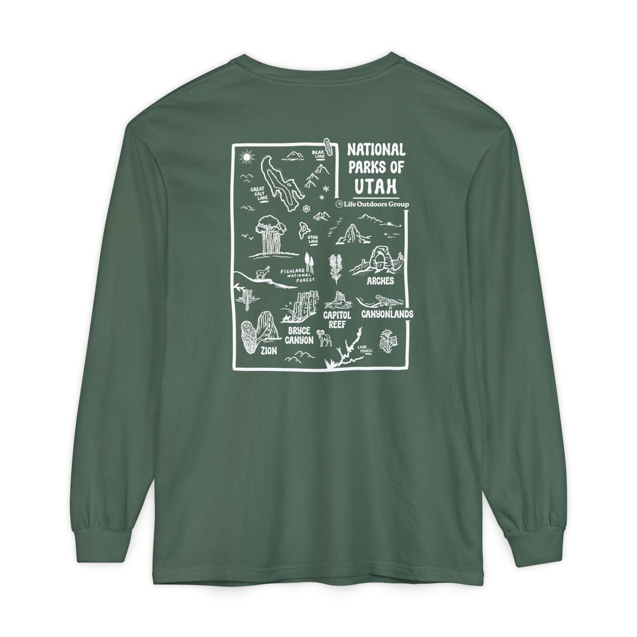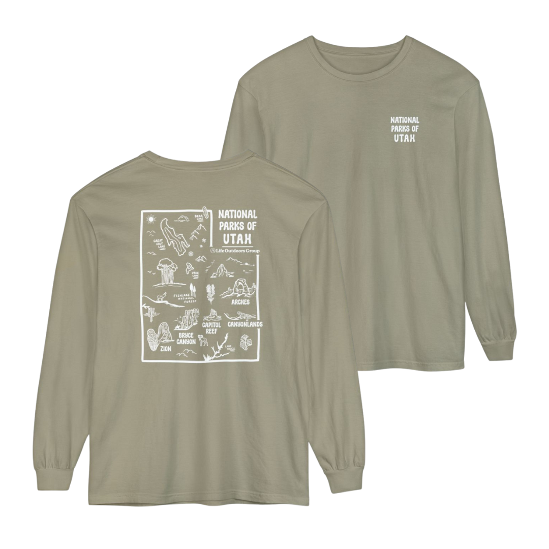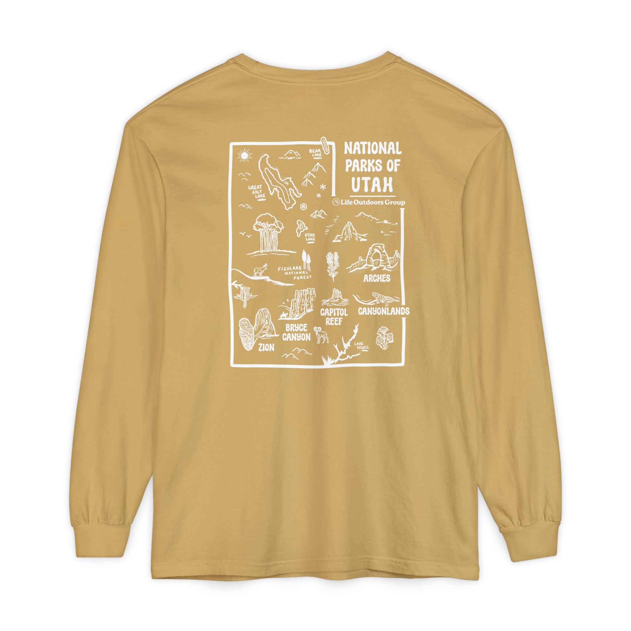 Discover the beauty of Utah's National Parks with our Utah National Parks Map long sleeve.