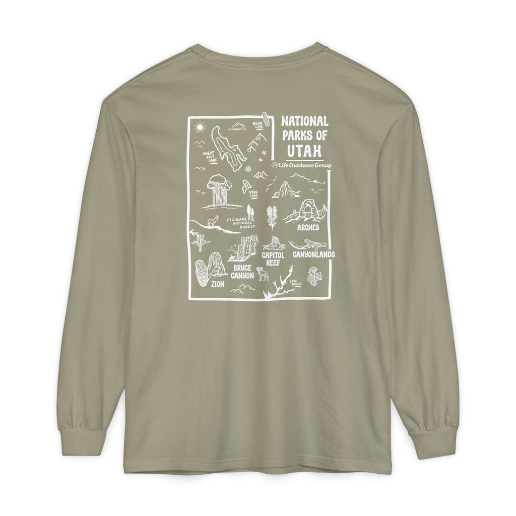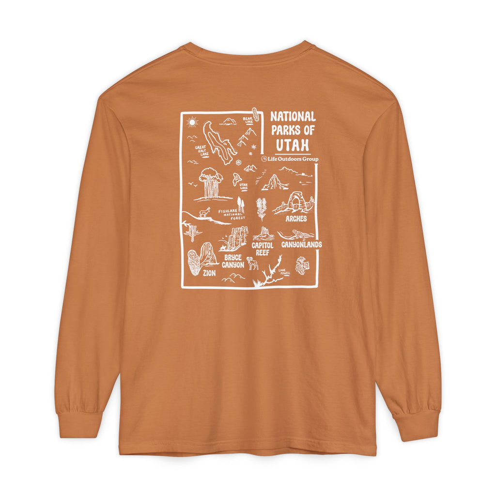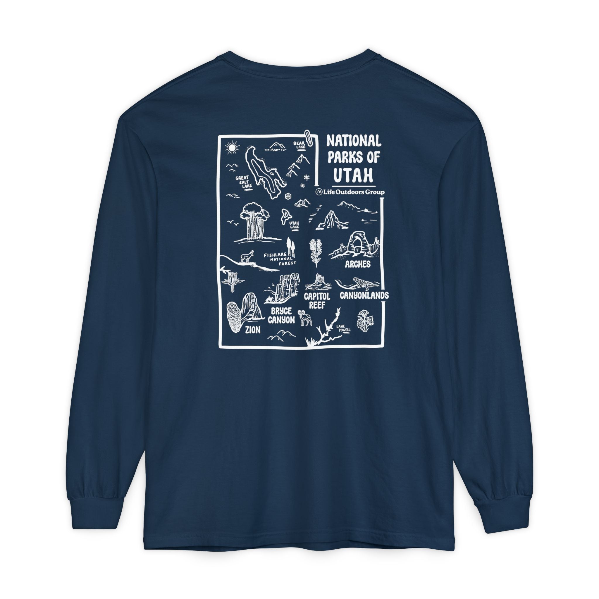 Discover the beauty of Utah's National Parks with our Utah National Parks Map long sleeve.