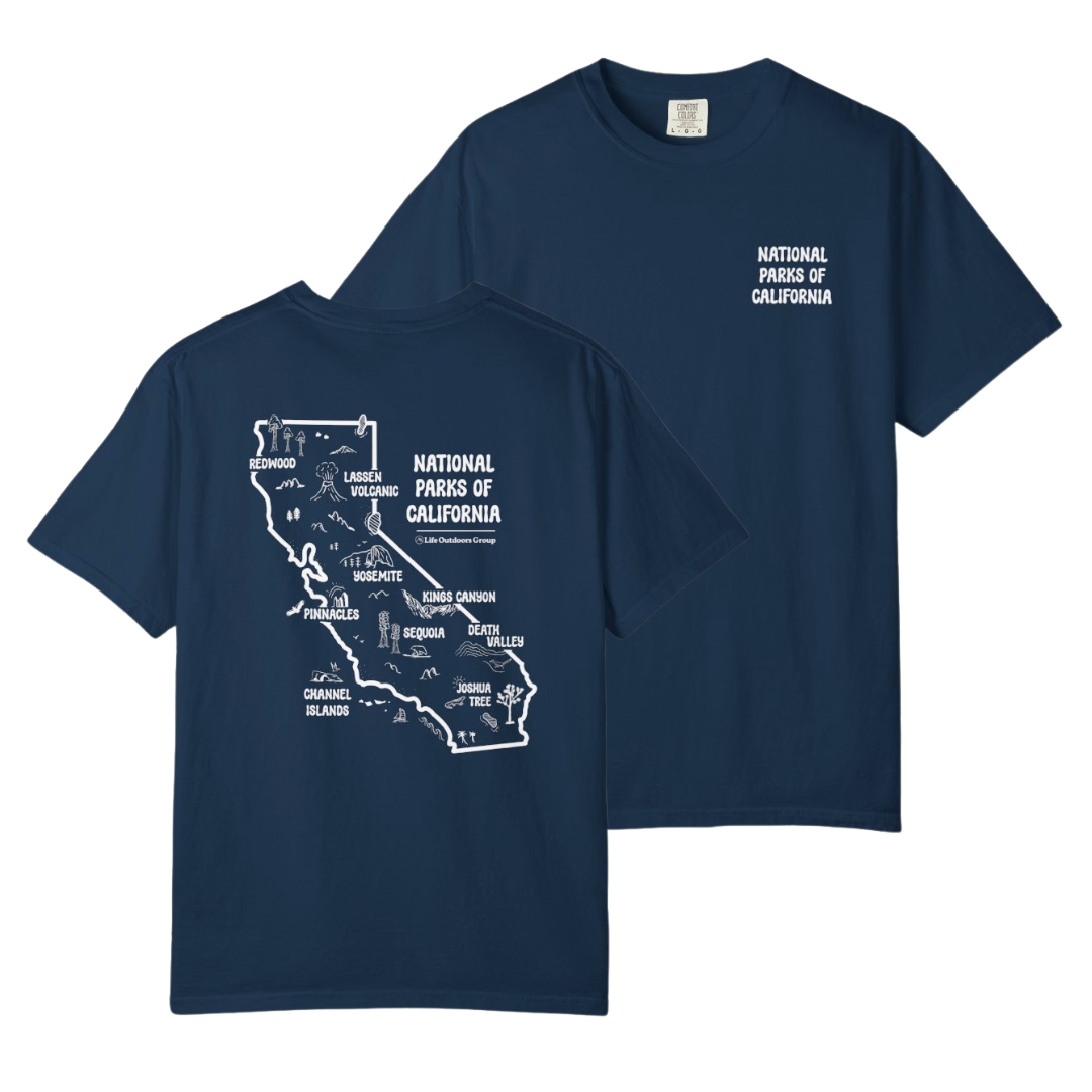 Explore the diverse beauty of the Sunshine State with our California National Parks Map t-shirt.