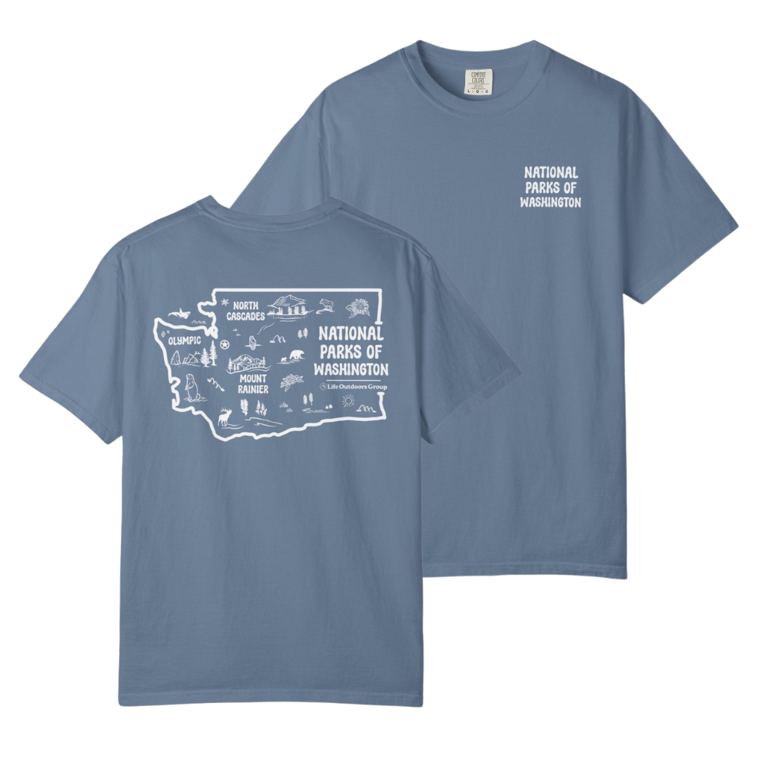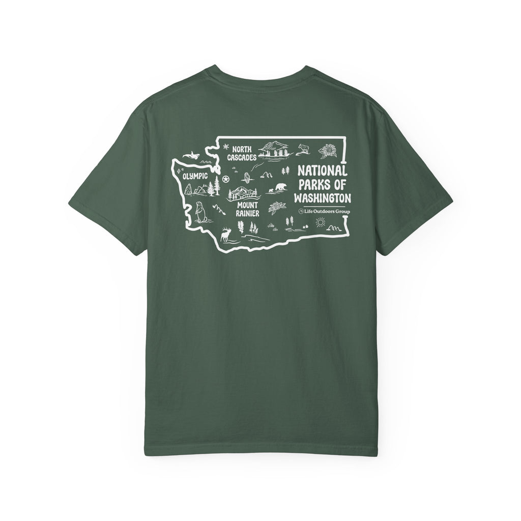 Discover the rugged beauty of the Evergreen State with our Washington National Parks Map t-shirt.